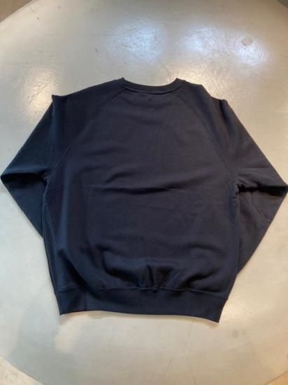 ラグランスリーブのスウェット、左胸にOGロゴがプリントされています。